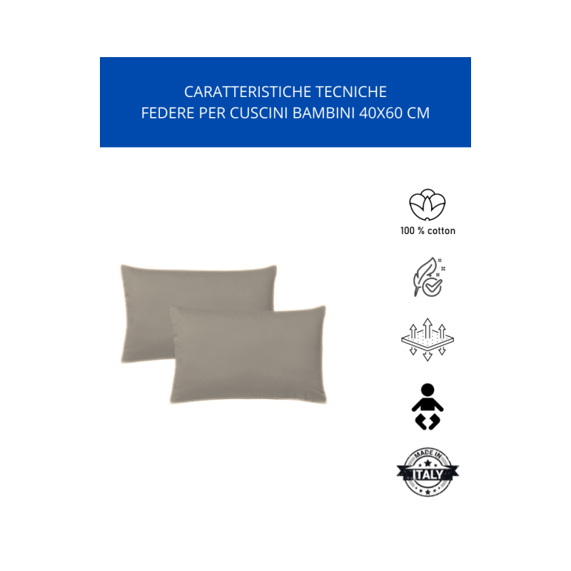 - KLULK Set 4 Federe Per Cuscini Per Bambini 40x60 Cm,In Puro Cotone 100% Fibra Naturale In Tinta Unita Fango Made In Italy