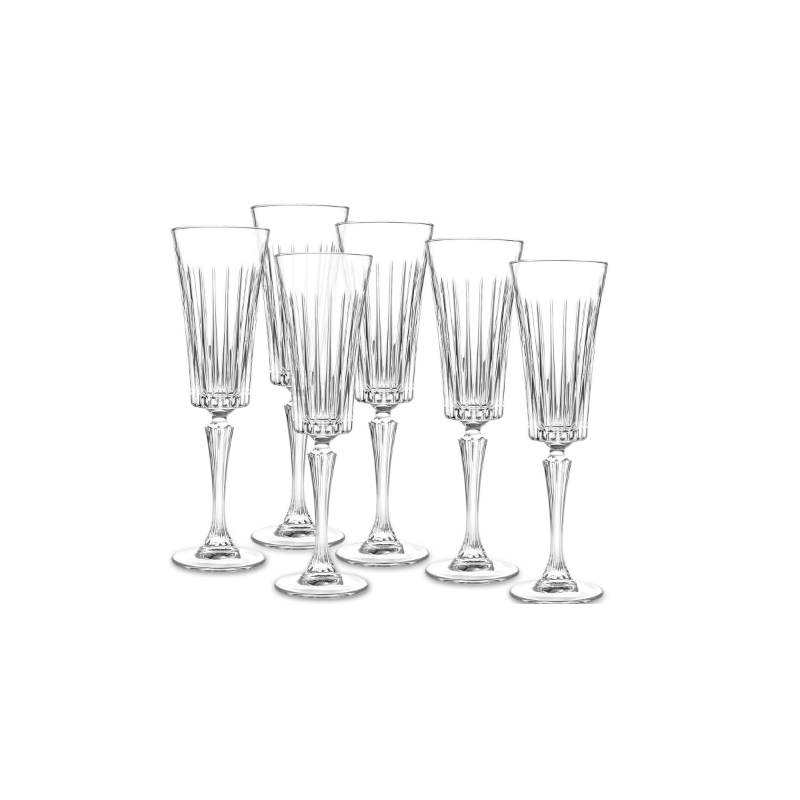 - Set 6 Calici Spumante Linea Timeless Flute 21 cl In Cristallo Luxion Made in Italy