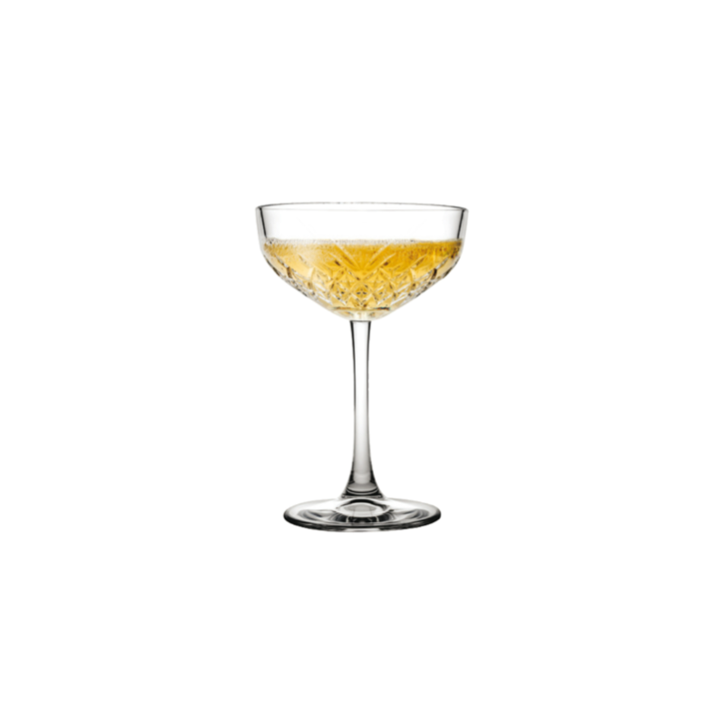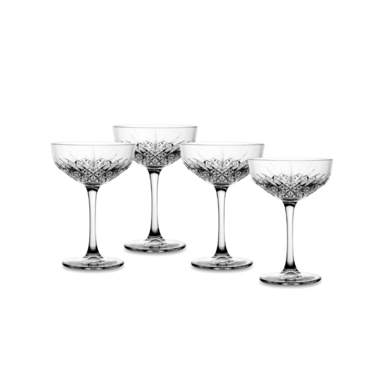 Set 4 Coppe Champagne Serie Timeless in Vetro Trasparente Con Decoro Geometrico 27 cl