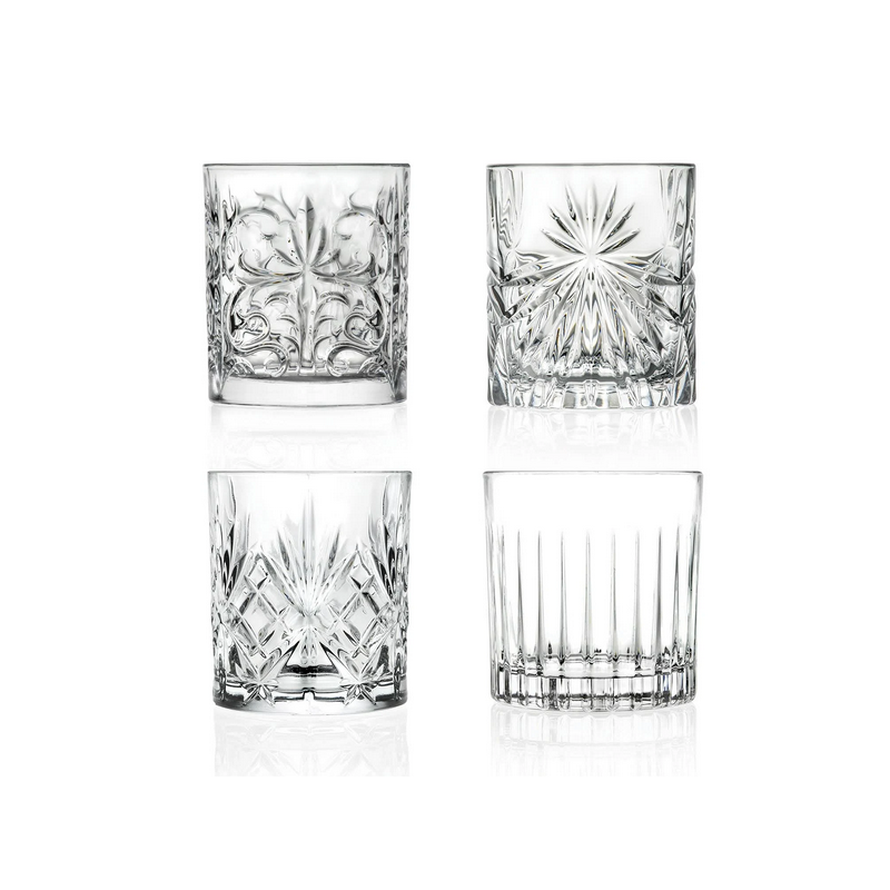 I set sono composti da 4 bicchieri dof o 4 bicchieri hb in 4 stili diversi, un Timeless, un Tattoo, un Oasis e il classico Melodia e sono l’ideale anche per essere utilizzati a tavola per acqua o succhi di frutta, per uscire dagli schemi e far scegliere ai tuoi ospiti lo stile che più li rappresenta.
