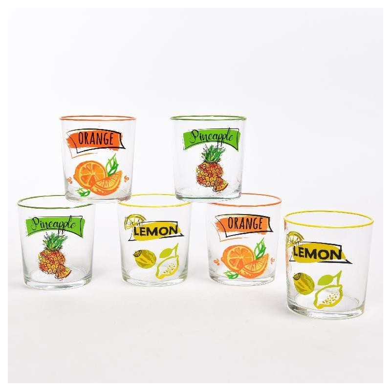 - Set 6 bicchieri in vetro juice decori assortiti 300cc 09361