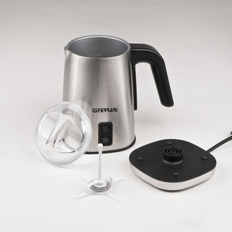 Capacità: 200ml per montare e 350ml per scaldare 3 funzioni: monta a caldo, monta a freddo e scalda Frustino a movimento magnetico Spegnimento automatico Possibilità di montare senza scaldare Luci di funzionamento Contenitore antiaderente per facile pulizia Base d'appoggio fredda Alimentazione: AC 230V ~ 50/60 Hz Potenza: 500W Dimensioni (L x H x P): 19 x 21 x 12,5 cm Peso: 1 kg