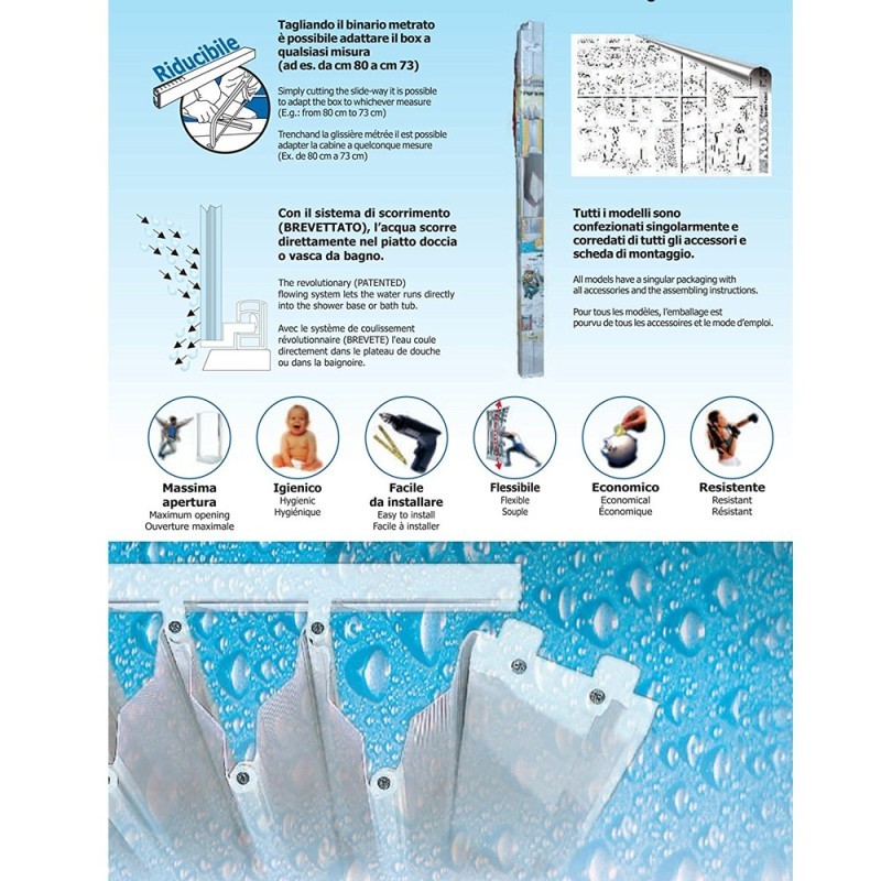 Facile da montare grazie ai binari metrato è possibile adeguare le misure alle dimensioni del piatto doccia 100% PVC stabilizzato Viti inox