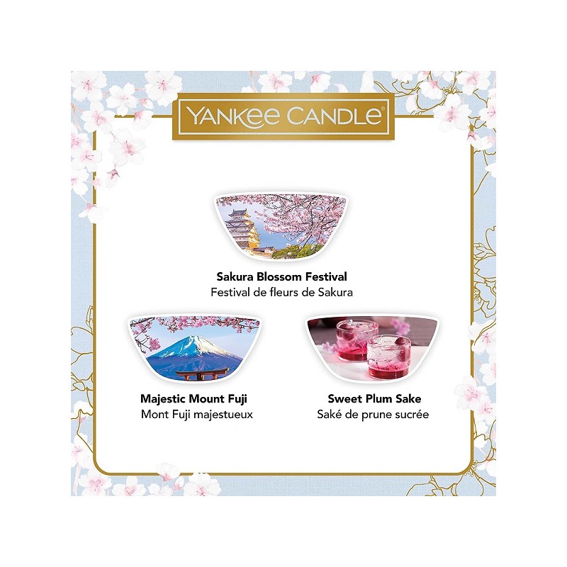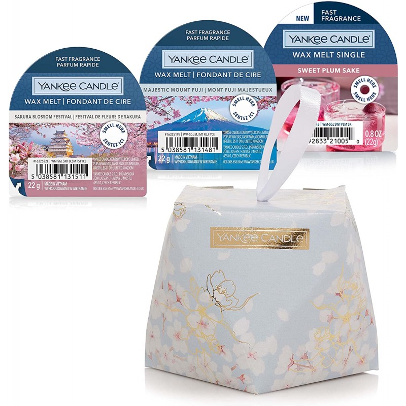 Questa confezione regalo include tre tart profumate nelle fragranze Sakura Blossom Festival, Majestic Mount Fuji e Sweet Plum Sake