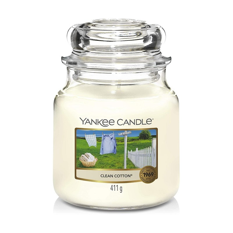 Candela profumata giara media clean cotton fino a 75 ore