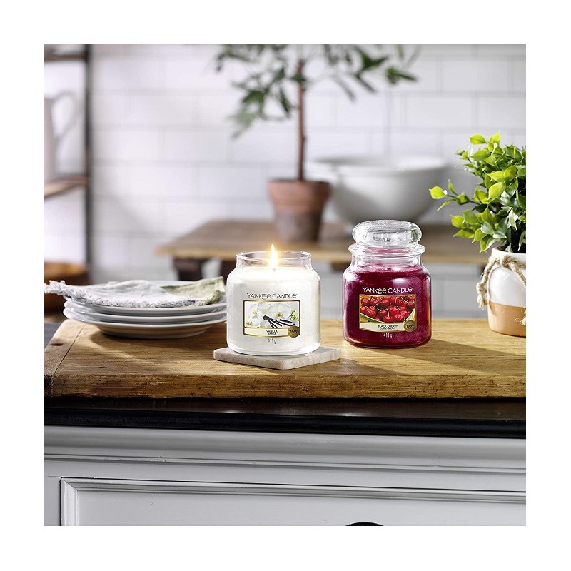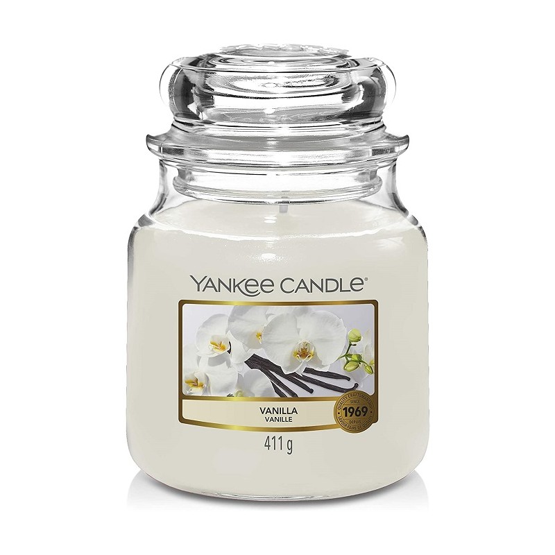 Ogni candela media è inserita nella classica giara di vetro con coperchio per preservare e contenere la fragranza.