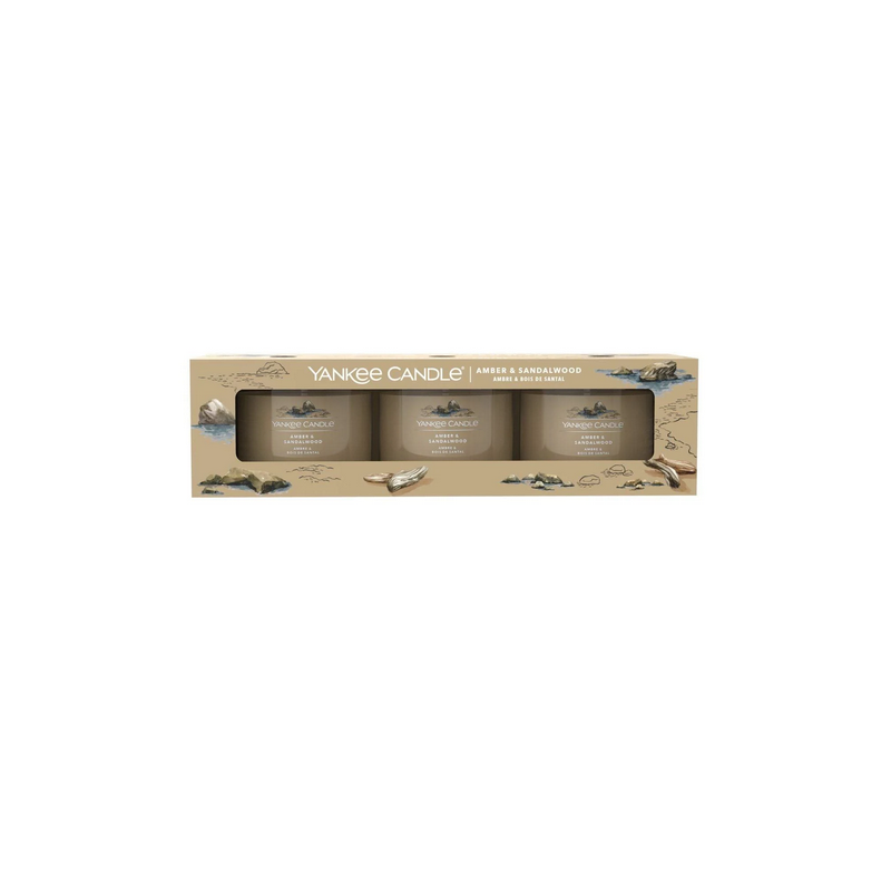 Box set da 3 candele votive in vetro di Yankee Candle della collezione signature Box set con fragranza: amber & sandalwood.