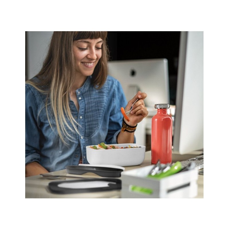 Il set è composto da lunch box e set posate, ideale per trasportare e consumare il cibo fuori casa in modo sicuro ed elegante.