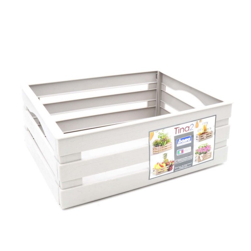 Cassetta multiuso, dal decoro simil legno ideale in ambienti rustici o moderni. Componibile e sovrapponibile per un uso ancora più vario.