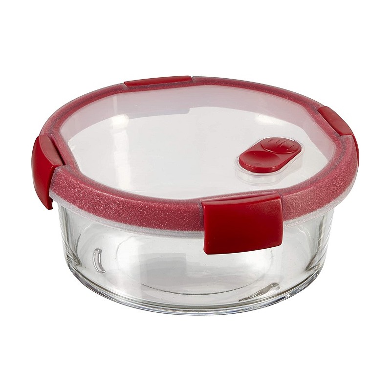 Contenitore Cibo in Vetro con Valvola Rosso cm20x20x8h