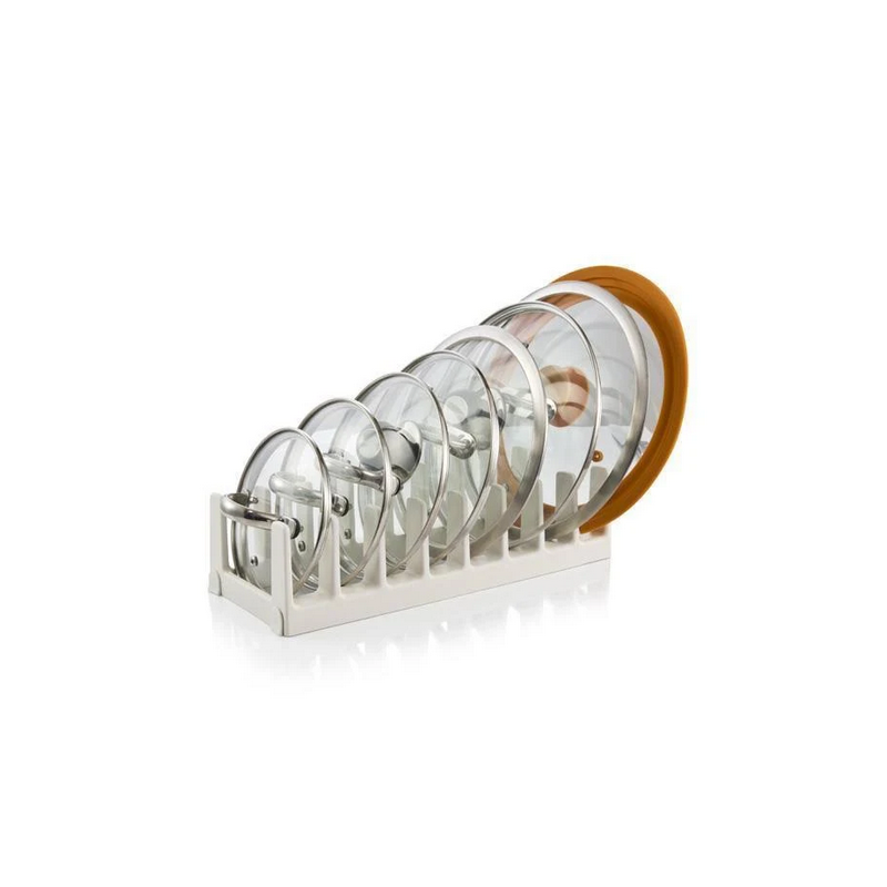 Tutto in ordine nei pensili e negli armadietti della cucina: grazie al porta coperchi ne puoi riporre ordinatamente fino a 8, è adatto a tutti i coperchi Tescoma e a coperchi comuni con diametro compreso fra 14 e 32 cm.
