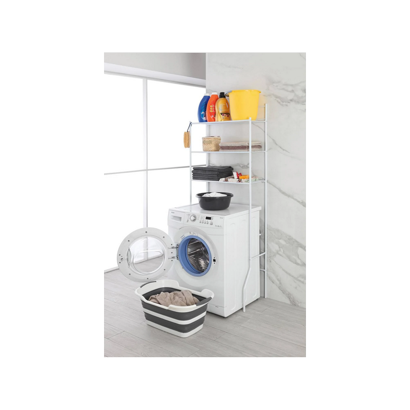 Scaffale sopra-lavatrice salvaspazio in acciaio bianco con 3 ripiani
