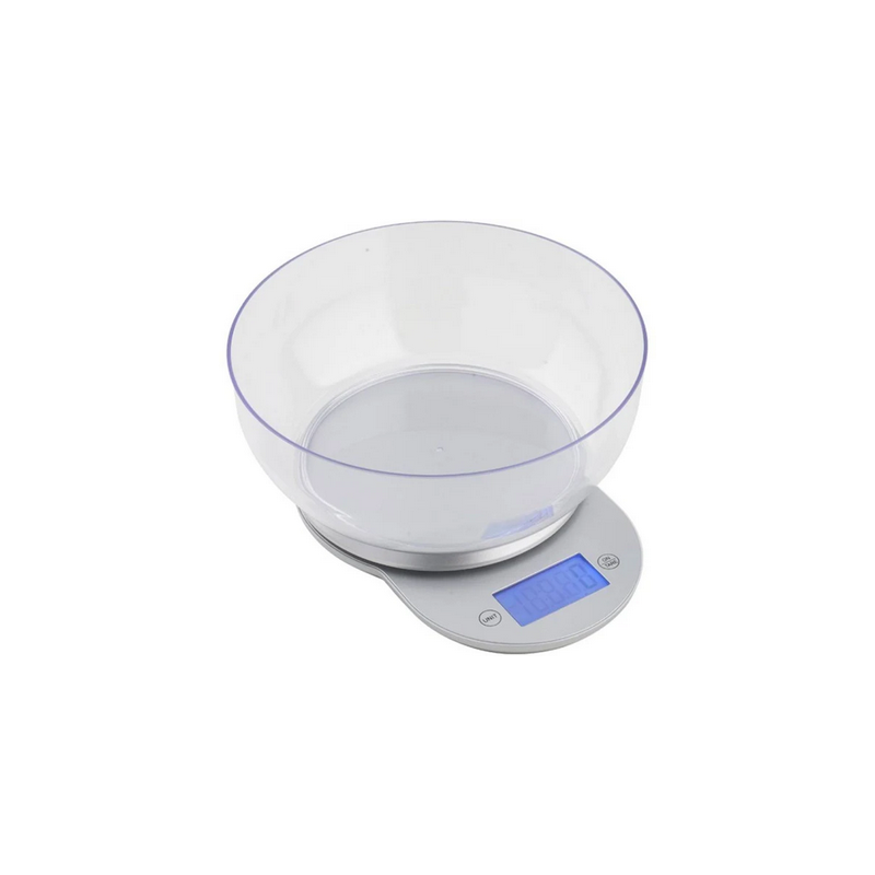 Plastica ABS, ciotola trasparente, display LCD, illuminato, unità di peso con funzione di pesatura.