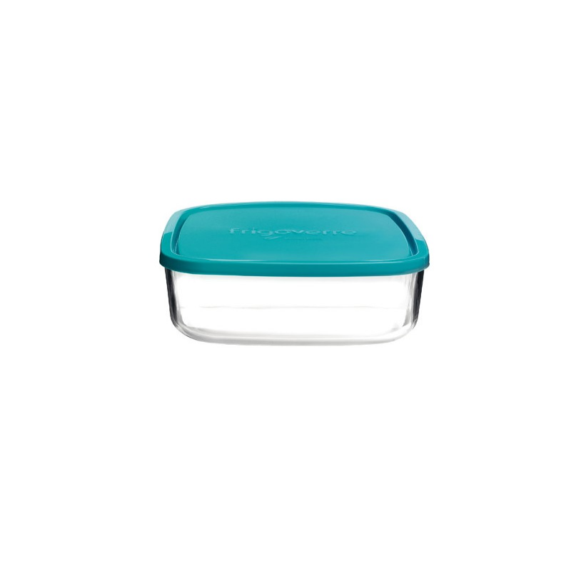 Contenitore frigoverre vetro quadrato tappo azzurro - Dimensioni : 22,5 x 22,5 cm.