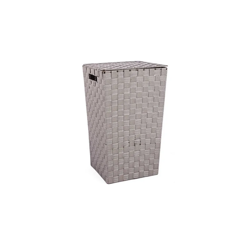 Cestino da bucato in nylon, struttura in acciaio e trama in nylon.