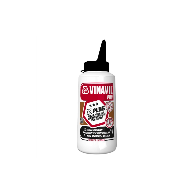 A differenza di altri adesivi vinilici d3, vinavil d3 plus si contraddistingue in quanto: non contiene formaldeide (sostanza volatile cancerogena di classe 1 B H 35 libera o sostanze che la generino; non corrode le superfici metalliche con cui viene a contatto, in quanto non contiene cloruri; dopo evaporazione dell’acqua, il film di colla è trasparente; dopo evaporazione dell’acqua, il film di colla non ingiallisce dopo esposizione al calore o alla luce.