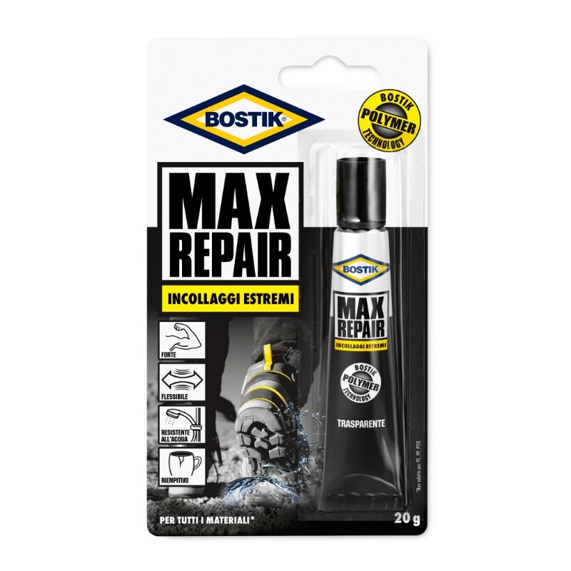 bostik max repair è l'adesivo universale, forte e flessibile per gli incollaggi più estremi!