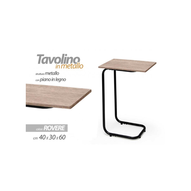 - Tavolino Laterale Rovere Struttura In Metallo Con Piano In Legno 40 x 30 x h 60 cm