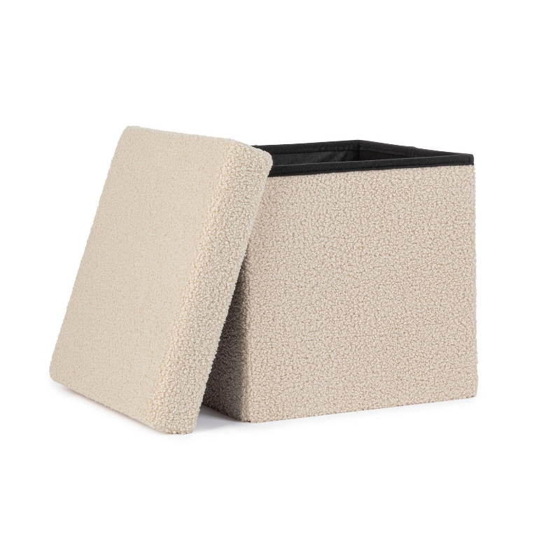 - Pouf Contenitore Con Struttura In Mdf Joris Qu E Rivestimento Con Effetto Boucle Beige
