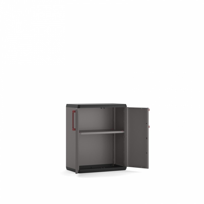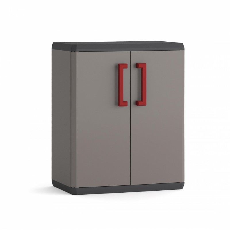 - Armadio Basso Per Interni Ed Esterni In Resina Con 2 Ripiani Linea Quadra Grigio H 90 Cm