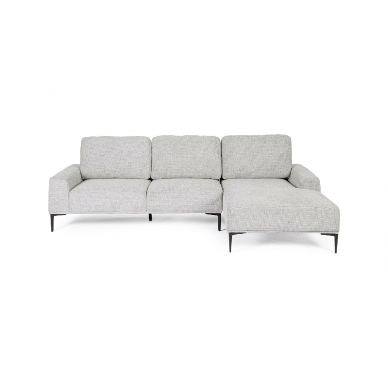 Divano 3 Posti Con Penisola Washington Con Tessuto In Poliestere Grigio Chiaro E Struttura In Legno Di Eucalipto