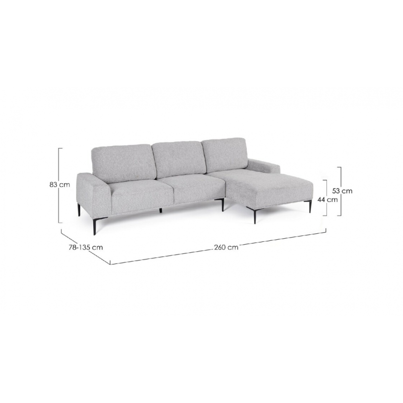 Dimensioni: L 260 cm, P 78/135 cm, H 83 cm, H seduta 44 cm, H braccioli 53 cm