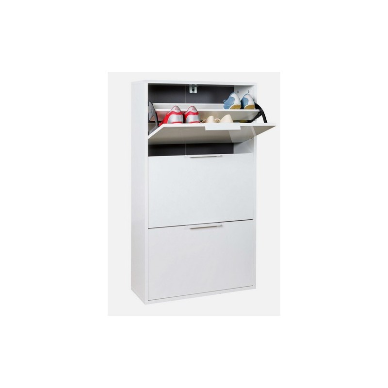 La struttura è realizzata in materiale resistente e il suo design moderno, con tre ante a ribalta, permette un facile accesso alle scarpe senza occupare troppo spazio.