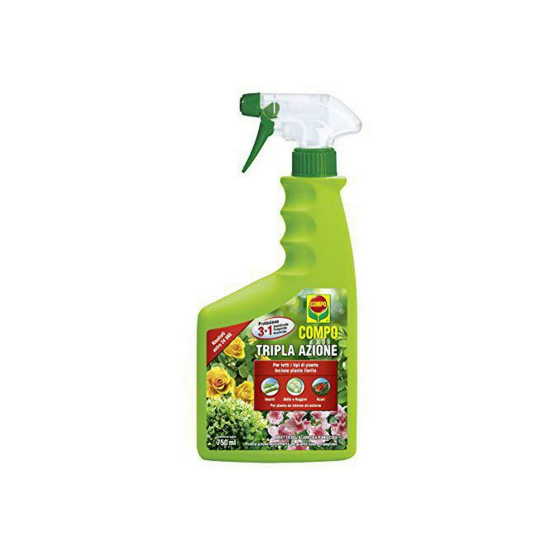 Compo Tripla Azione è un prodotto ad attività insetticida, acaricida e fungicida pronto all'uso per la protezione di piante ornamentali e da fiore di tipo arbustivo ed erbaceo, annuali e perenni coltivate in appartamento, balcone ed in giardino domestico.