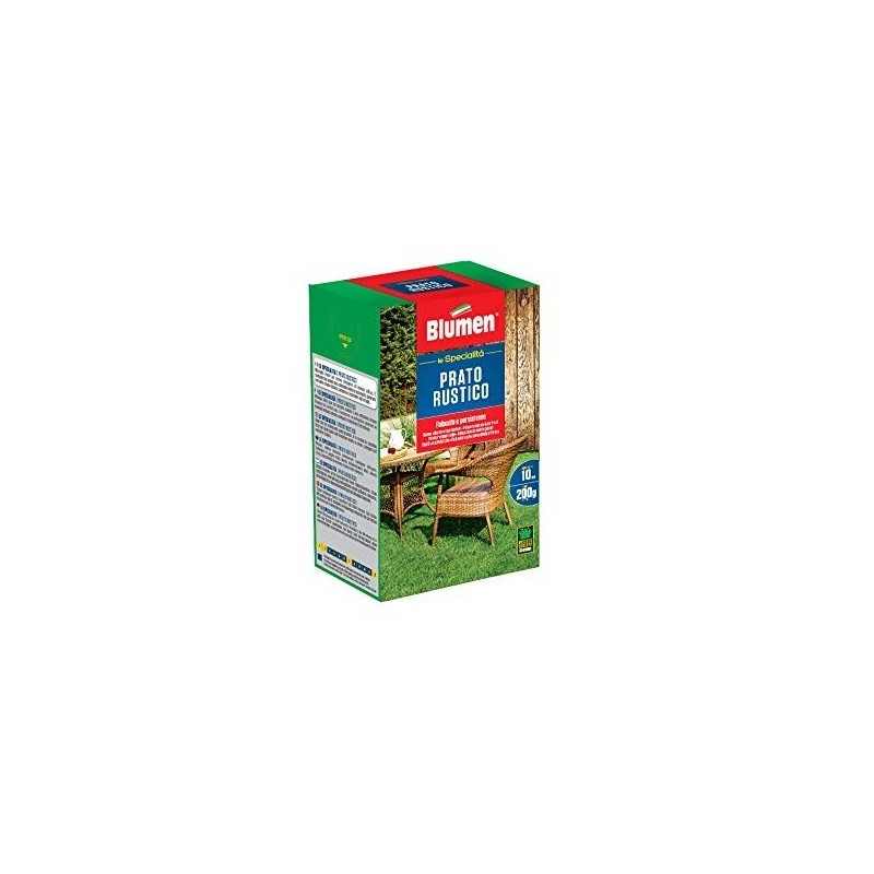 Blumen semi prato prato rustico, un miscuglio ideale per terreni sottoposti ad intenso utilizzo. Composto da varietà che generano un manto erboso robusto, resistente e compatto, radica molto in profondità resistendo agli strappi. Prato Rustico è confezionato nel pratico astuccio con dispositivo spargiseme, per distribuire il seme più facilmente ed uniformemente
