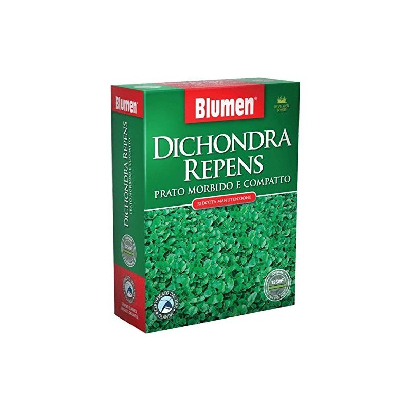 Blumen dichondra repens, pianta perenne dalle caratteristiche foglioline rotonde, molto piccole. Forma un tappeto erboso morbido e compatto, non teme il caldo e la siccità ed è particolarmente indicato per le zone a clima secco e asciutto. Il risultato è un prato perfetto da non tagliare mai