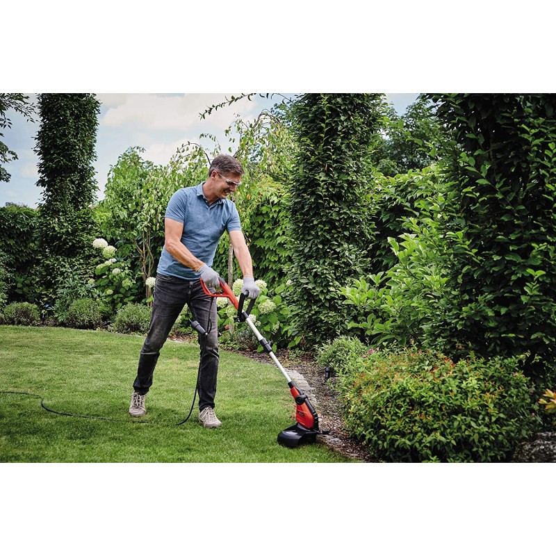 decespugliatore elettrico gc-et 4530. robusto motore elettrico, guida confortevole a 2 mani con una impugnatura supplementare regolabile, doppio filo, blocco motore girabile di 180° per tagli in verticale o nei bordi, possibilità di inclinazione del motore in 4 posizioni, maniglia in alluminio telescopica, filo di alimentazione completamente automatico, carter e extra grip in pvc antiurto; ruote per un facile e preciso taglio lungo i bordi, carter di protezione, cavo anti breackout, coperchio di protezione. viene fornito con 3 bobine di filo. dati tecnici: - alimentazione 230 v | 50 hz - potenza 450 w - velocità del filo 8800 giri / min. - larghezza di taglio a doppio filo 300 mm - diametro del filo 1,4 millimetri - lunghezza del filo di 10 m.