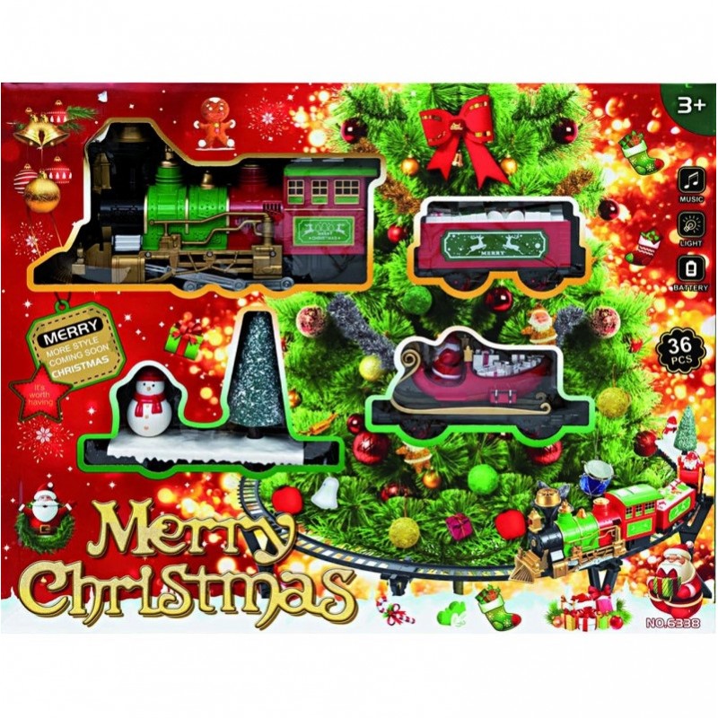 Trenino con supporto da 36 pezzi con luci e musica, ideale per decorare i piedi dell'albero di Natale.