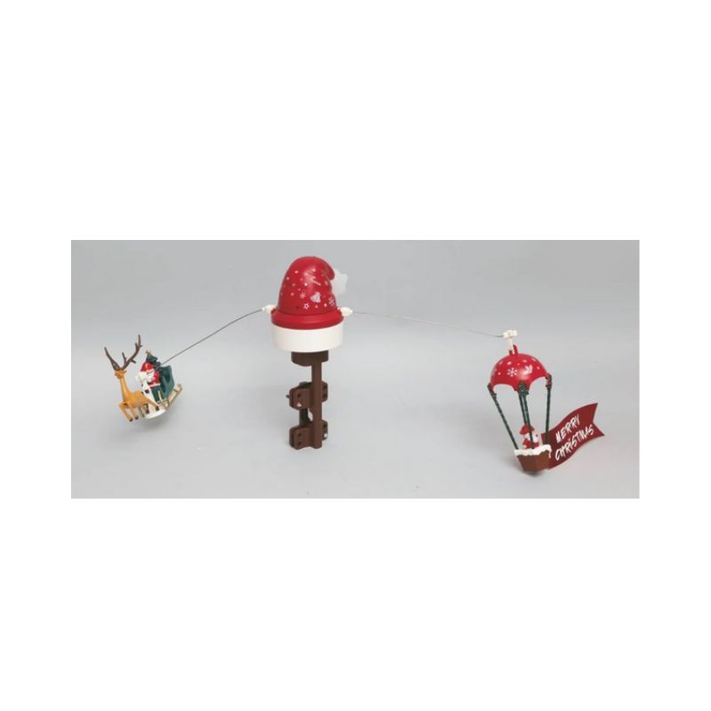 Il "Puntale Cappello Mongolfiera e Slitta" è un elegante puntale decorativo per l'albero di Natale che unisce l'iconicità del cappello da Babbo Natale con elementi unici e festosi, come una mongolfiera e una slitta natalizia. Realizzato con dettagli curati e materiali di qualità, questo puntale presenta una base a forma di cappello, tradizionalmente rosso con rifiniture bianche, che ricorda il copricapo di Babbo Natale. Dalla base del cappello emerge una mongolfiera decorata in stile natalizio, che sembra sorreggere la slitta in volo.