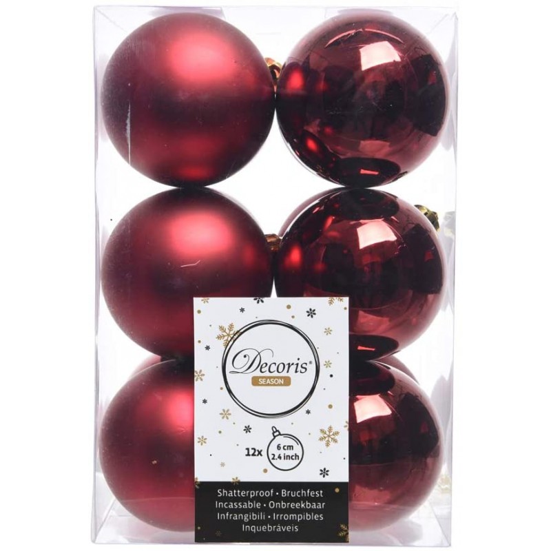 decoris box 12 sfere bordeaux diametro 60 mm 021830