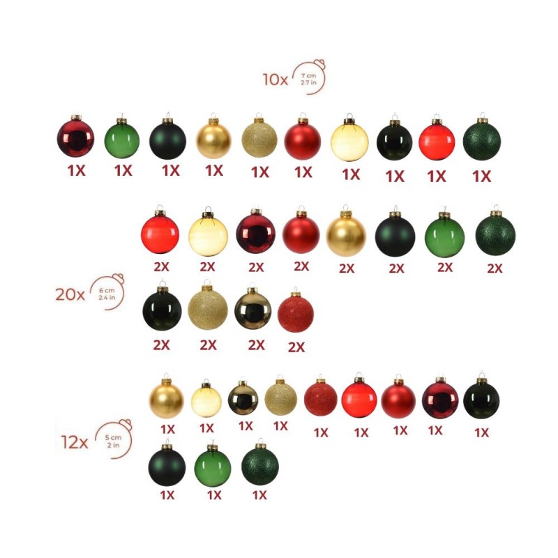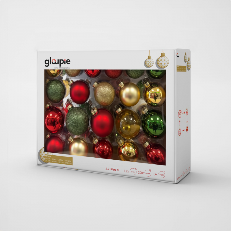 - GLOUPIE Box 42 Palline Per Albero Di Natale In Vetro Resistente Colorate,3 Misure Ø 7, 6, 5 cm, In Diverse Finiture