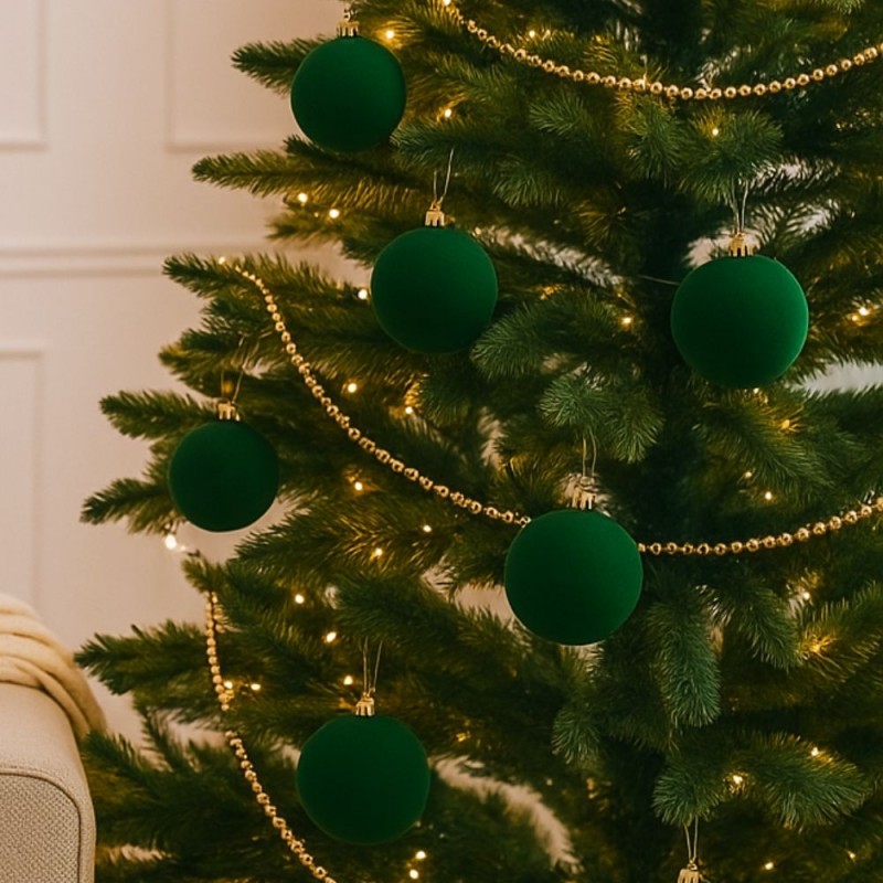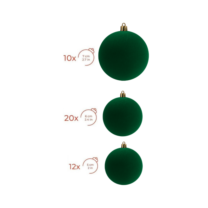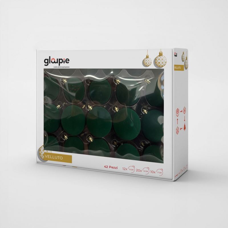 - GLOUPIE Box 42 Palline Per Albero Di Natale In Velluto Verde,Infrangibili,3 Misure Ø 7, 6, 5 cm