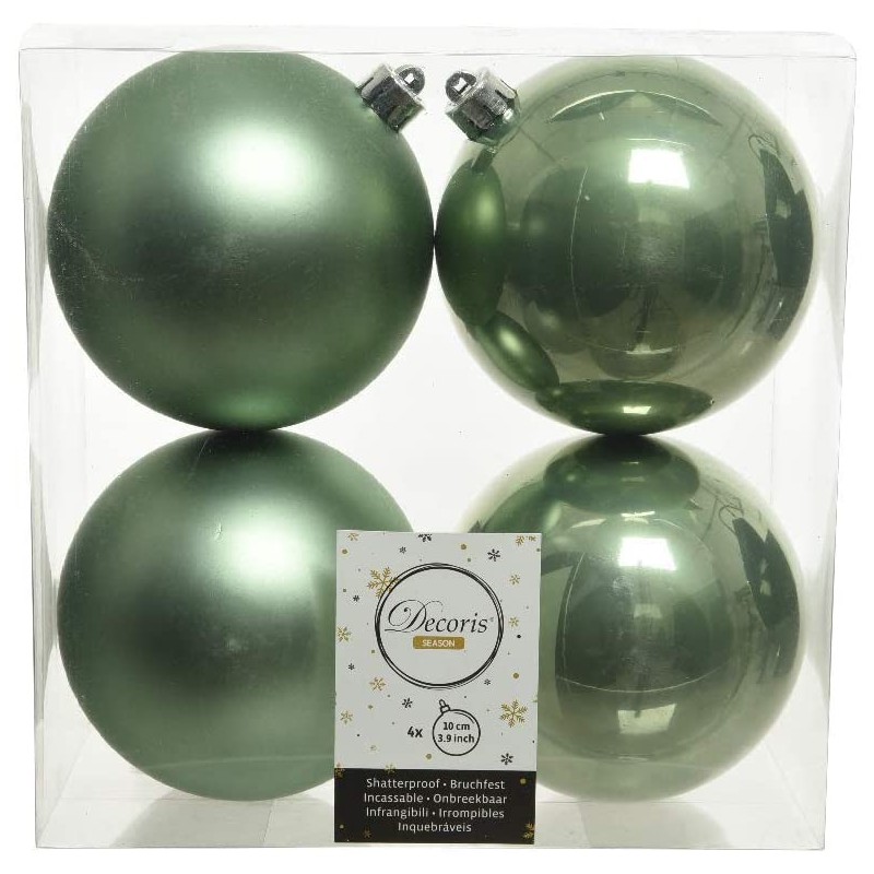 con le palline di natale color verde chiaro opaco/lucido puoi rendere unico il tuo albero, letue decorazioni natalizie, i festoni e le ghirlande. rendi incantevoli i tuoi addobbi natalizi con queste sfere colorate. il set è composto da 4 palline in materiale plastico infrangibile.