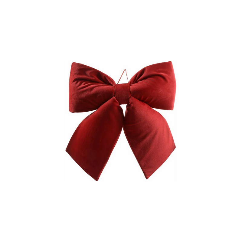 Fiocco di natale in vellutto da appendere di colore rosso imbottito - dimensioni: 44x39cm
