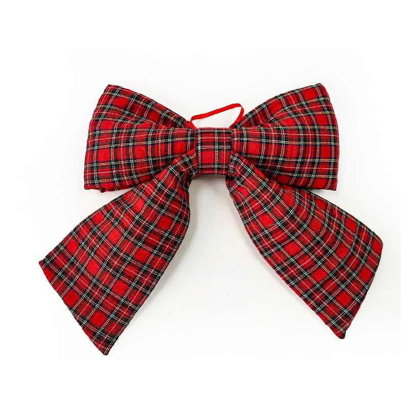 Fiocco di natale in vellutto da appendere di colore tartan imbottito - dimensioni: 44x39cm