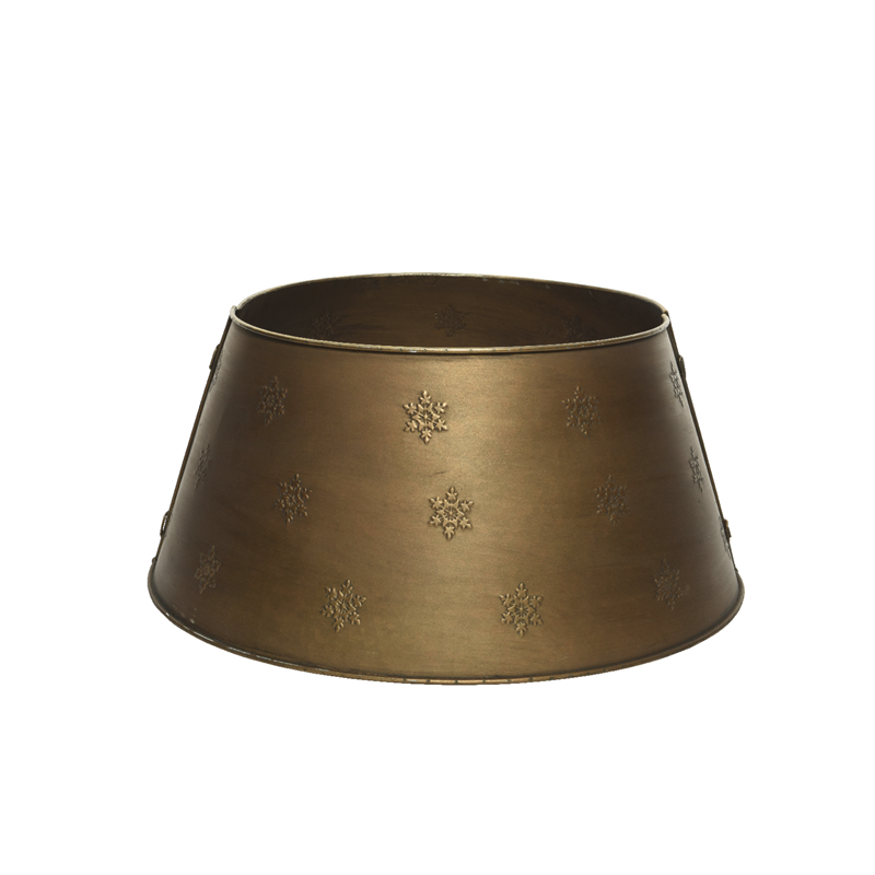 Base per albero di Natale, realizzata in metallo, colore dorato.