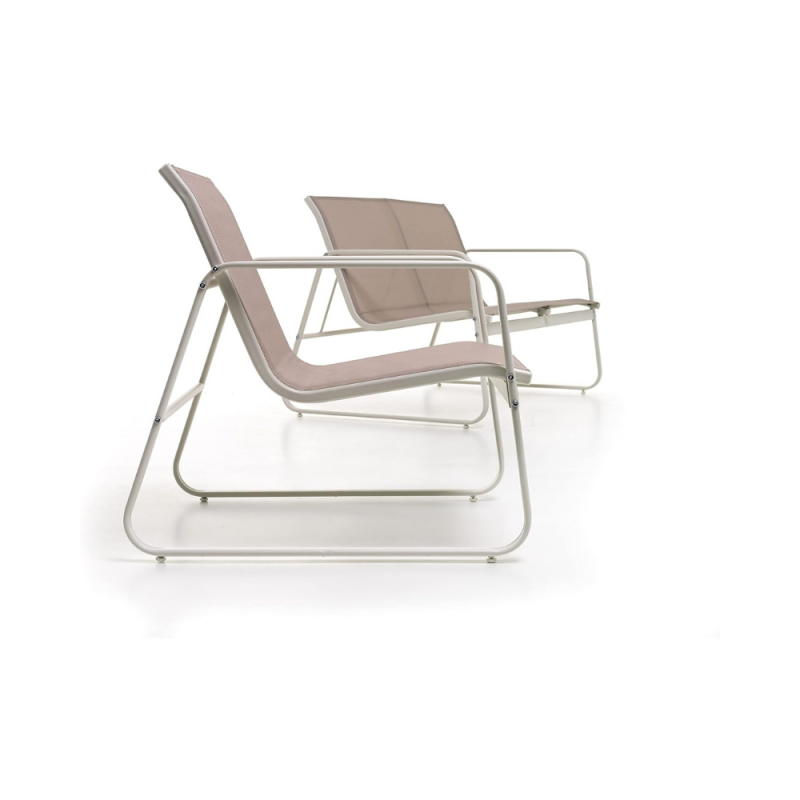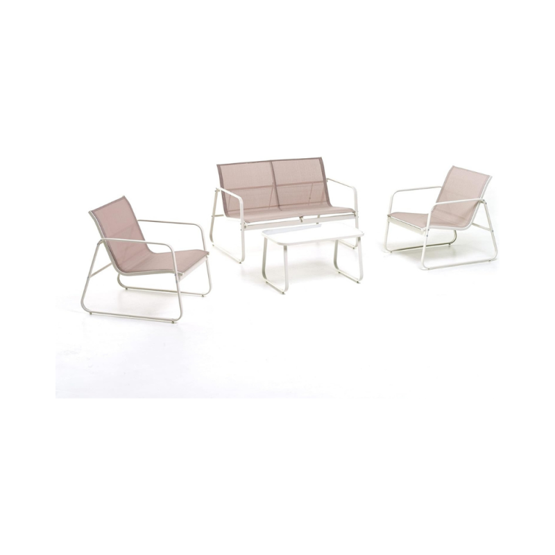 - Gloupie Salotto Da Giardino Esterno Elon 4 Posti In Metallo E Textilene Verniciato A Polvere Epossidica Bianca