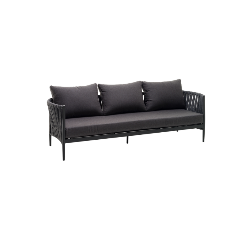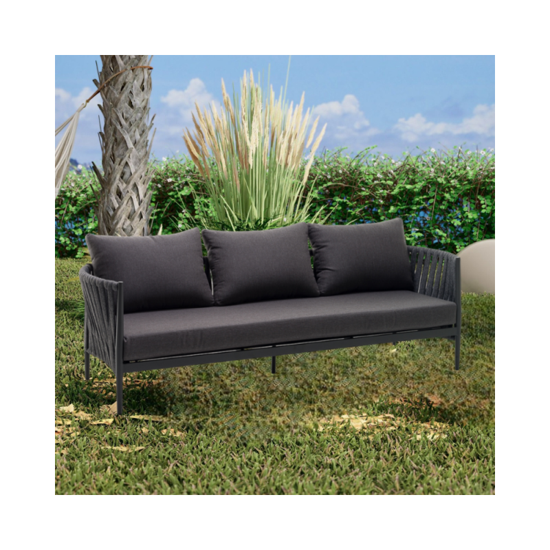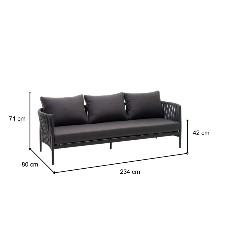 - KLULK Divano Da Esterno 3 Posti Aruba In Alluminio Verniciato A Polvere Antracite Con Intreccio In Corde L 234 x P 80 x H 71 Cm