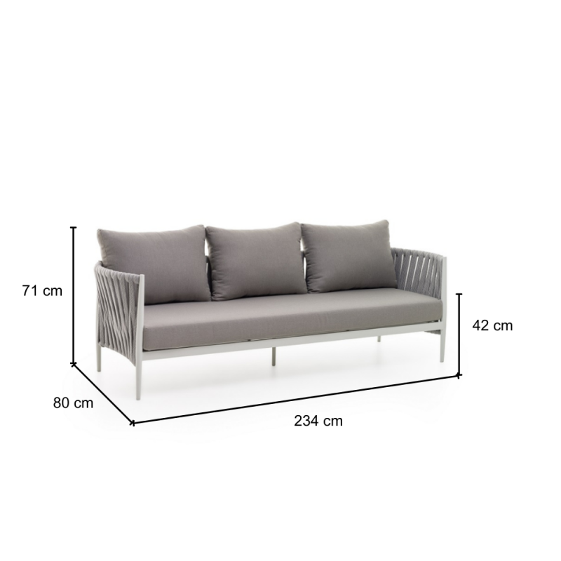 - KLULK Divano Da Esterno 3 Posti Aruba In Alluminio Verniciato A Polvere Bianca Con Intreccio In Corde L 234 x P 80 x H 71 Cm