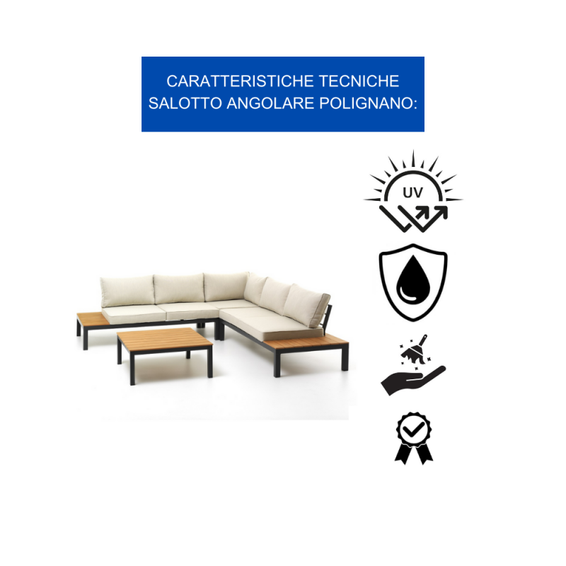 - KLULK Salotto Angolare 5 Posti Polignano Completo Di Divanetti, Tavolino E Cuscini In Acciaio Antracite Con Inserti In Polywood