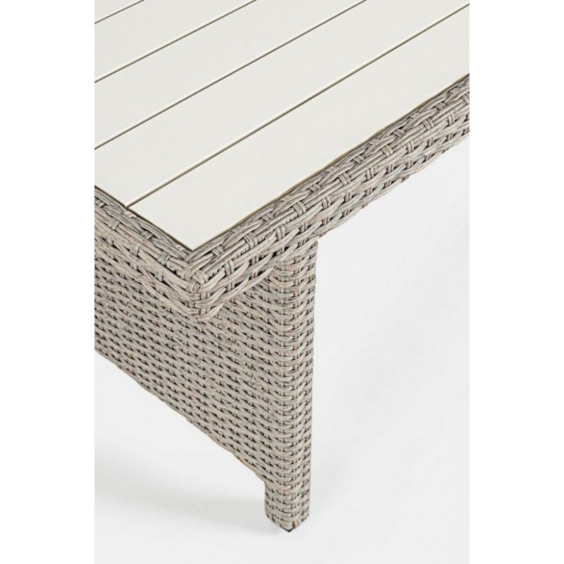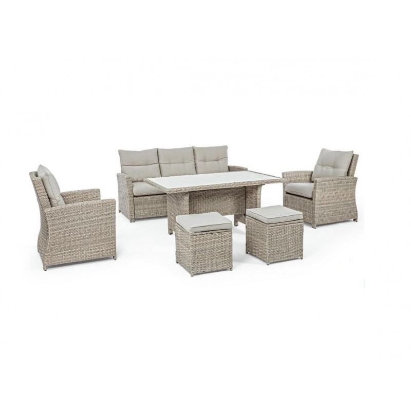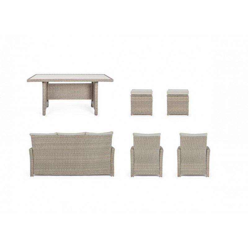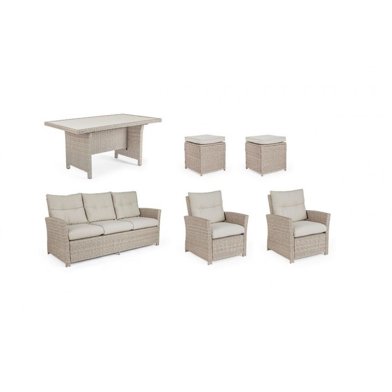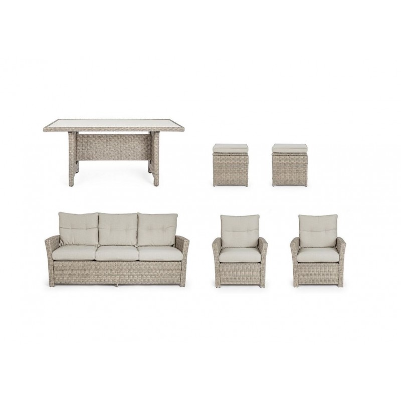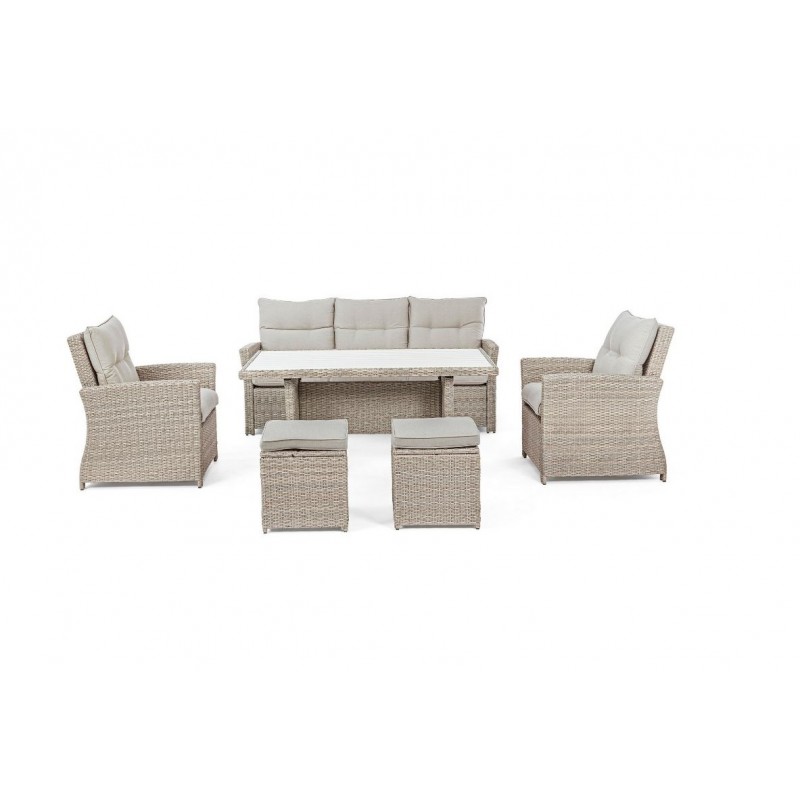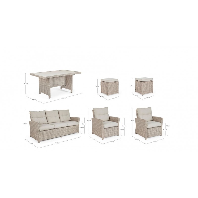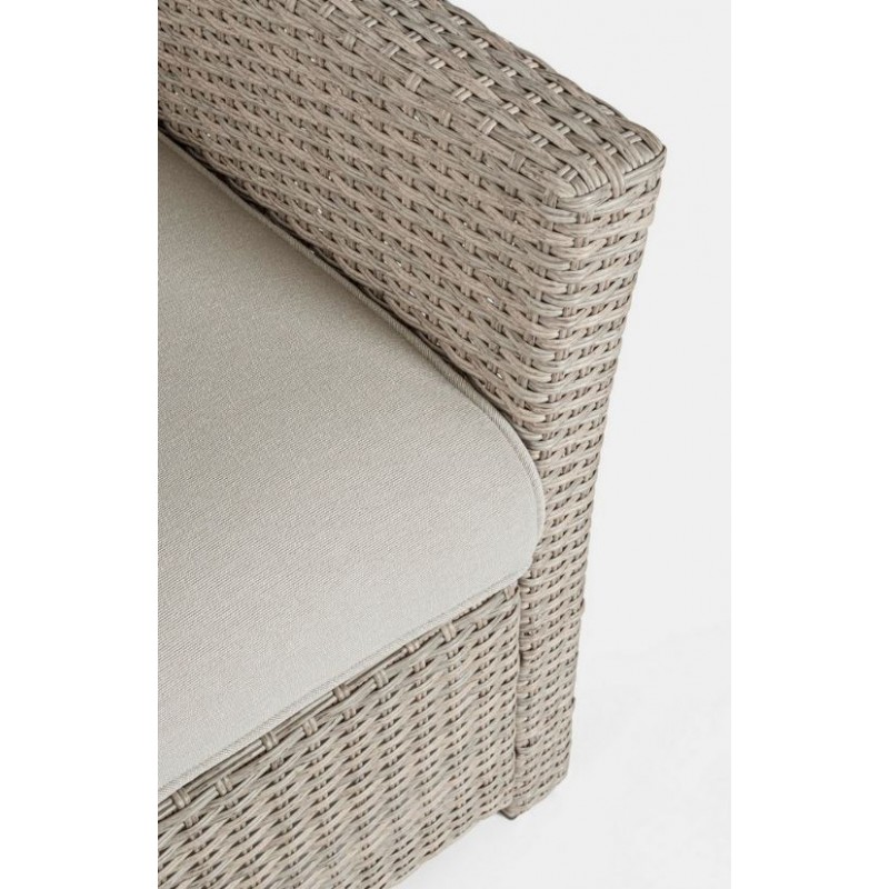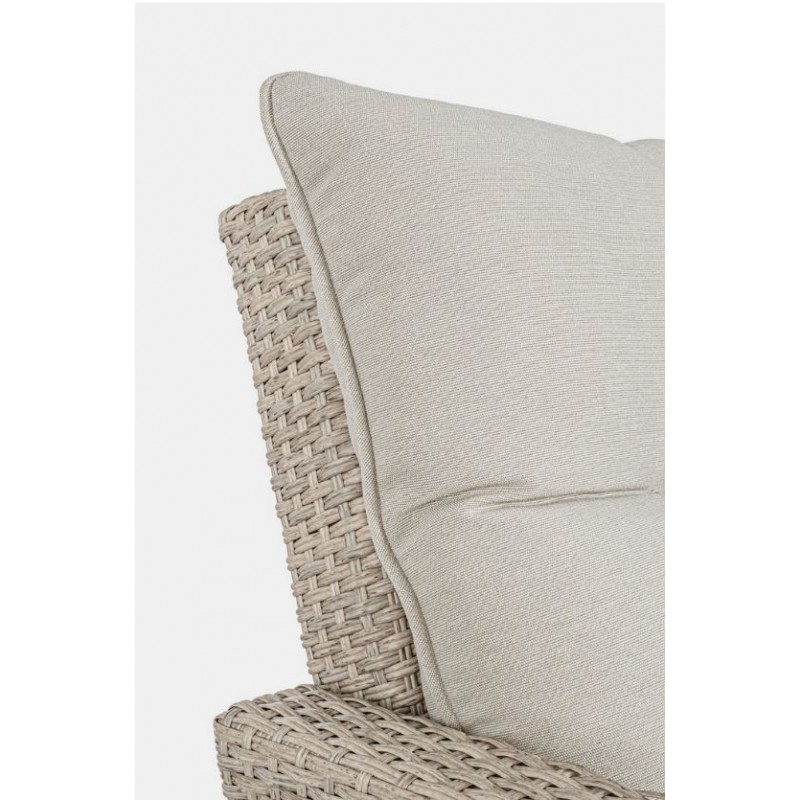 Lasciati avvolgere dal comfort dei morbidi cuscini in polipropilene beige, sfoderabili e lavabili per una facile manutenzione. La struttura in alluminio verniciata a polvere garantisce robustezza e resistenza alle intemperie, mentre l'intreccio in fibra sintetica dona un tocco di eleganza e raffinatezza.