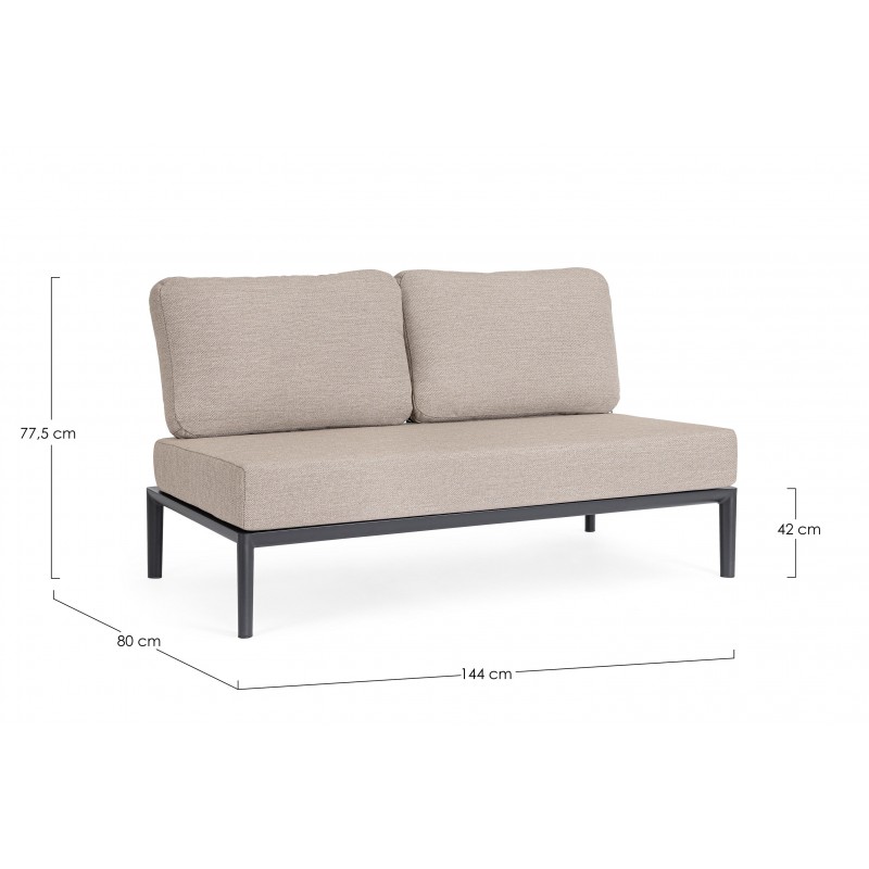 Divano 2 Posti Modulare C-C Gerald Antracite con Struttura in Alluminio Verniciata a Polvere