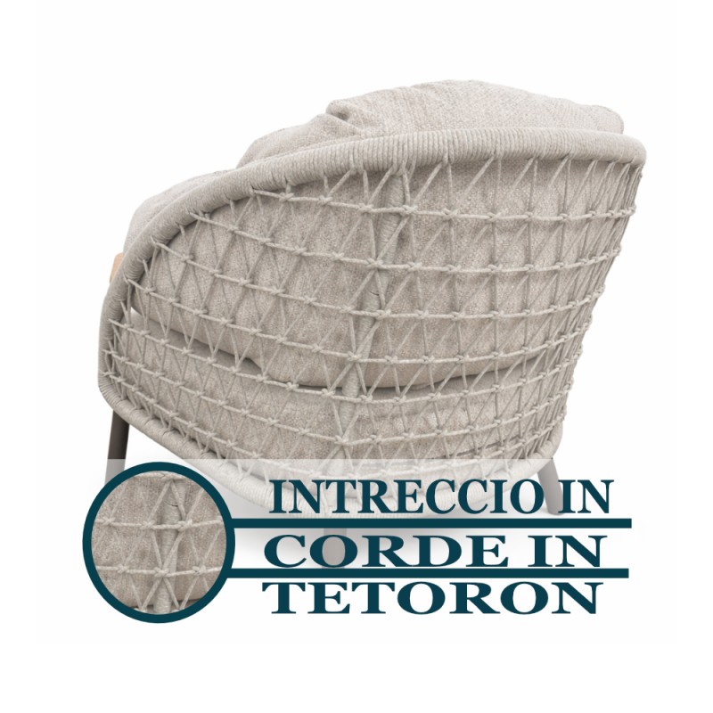 KLULK Salotto da Esterno 5 Posti Saona in Alluminio Verniciato a Polvere Tortora con Intreccio in Corde Resistente