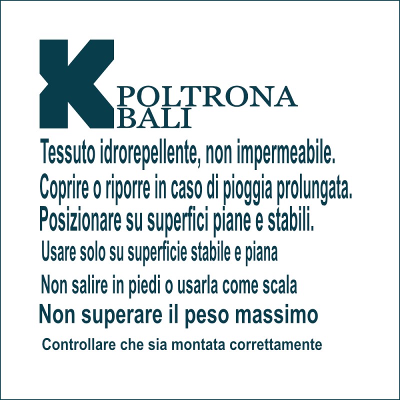 Il Poltrona Bali è progettato per offrire praticità nell’uso quotidiano. I materiali di alta qualità lo rendono estremamente facile da pulire e mantenere: basta un semplice panno umido per conservarlo sempre in perfette condizioni. Grazie alla sua struttura funzionale, è ideale anche per la gestione nei cambi stagione. Può essere facilmente riposto in garage o in cantina durante i periodi invernali, senza occupare spazio eccessivo. Una soluzione comoda, resistente e pensata per semplificare la tua vita all’aria aperta.