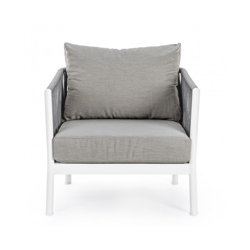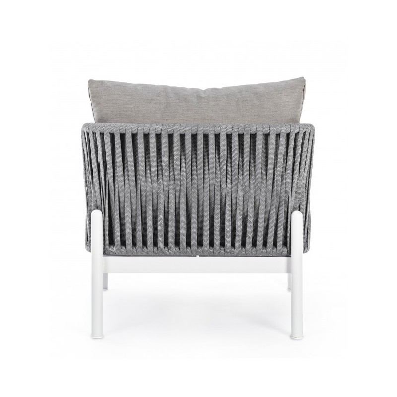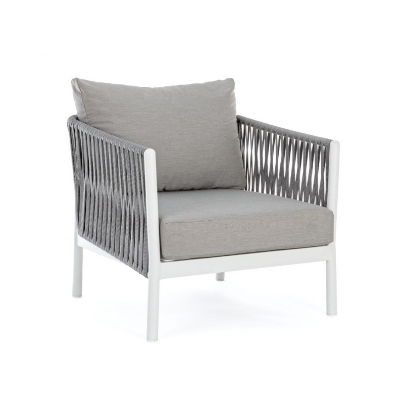 taglia 80x85x86 cm, colore: bianco, struttura base in alluminio verniciato a polvere, intreccio in corda speciale Tetoron (100% poliestere) con interno in polietilene (gomma), cuscino seduta Olefin con cerniera.