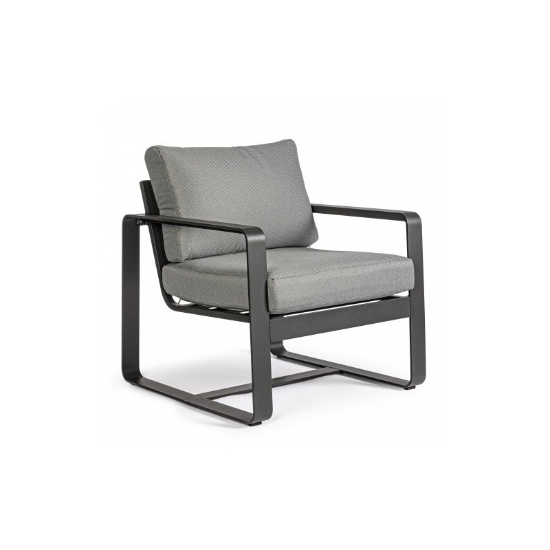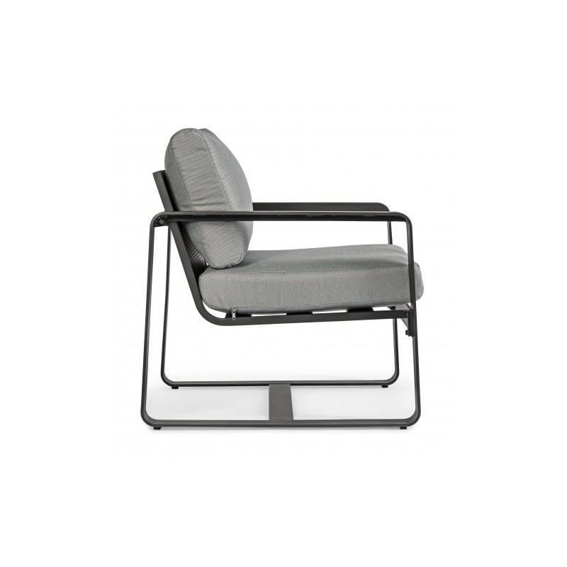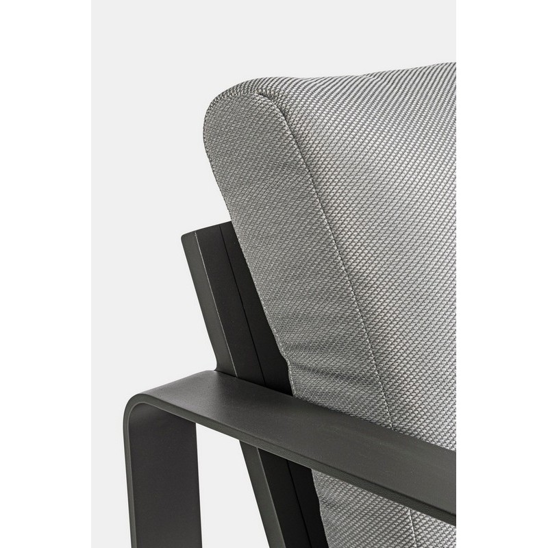 Merrigan è una poltrona fissa dal design moderno. La sua struttura è in alluminio verniciato antracite, mentre la seduta è in tessuto sfoderabile color grigio. Una poltrona dal design contemporaneo, ideale per dare un tocco ricercato e originale allo spazio esterno. Un complemento comodo e avvolgente, grazie ai cuscini in dotazione, perfetto per rilassarsi e trascorrere piacevoli momenti in compagnia all'aria aperta!